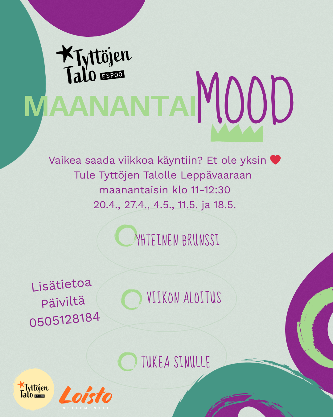 Huhtikuussa alkaa avoin LÄKSYAPU torstain olohuoneen yhteydessä. Maanantaisin alkaa MAKUJA MAAILMALTA – yhteinen ruoanlaittoryhmä. Jokaiselle kerralle tulee ilmoittautua erikseen ja mukaan mahtuu 8 kerrallaan. Keskiviikkona jatkuu ”VOI HYVIN KEHOSSA” -teemainen matalan kynnyksen avoin liikuntaryhmä – yhdessä kävelyä tai rauhallista liikkumista Tyttöjen Talon salissa. Katso lisää linkeistä!